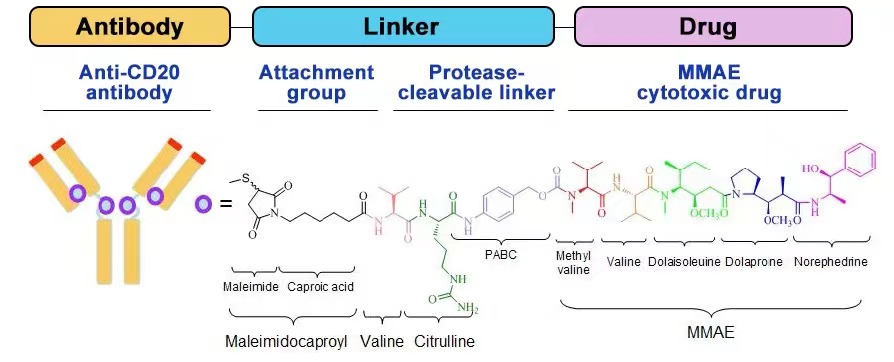 TRS005是特瑞思自主研發的抗CD20單抗-MMAE偶聯劑,靶向CD20+腫瘤細胞,通過受體介導的內吞作用將MMAE遞送到細胞中。