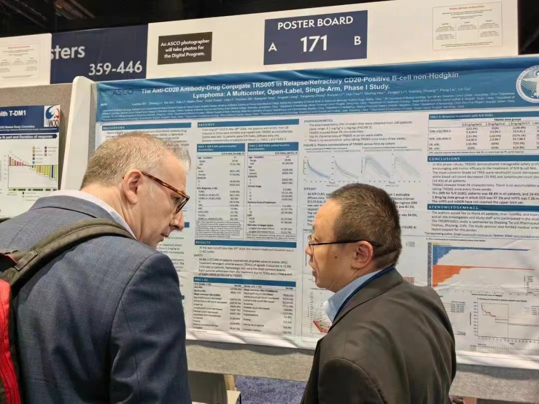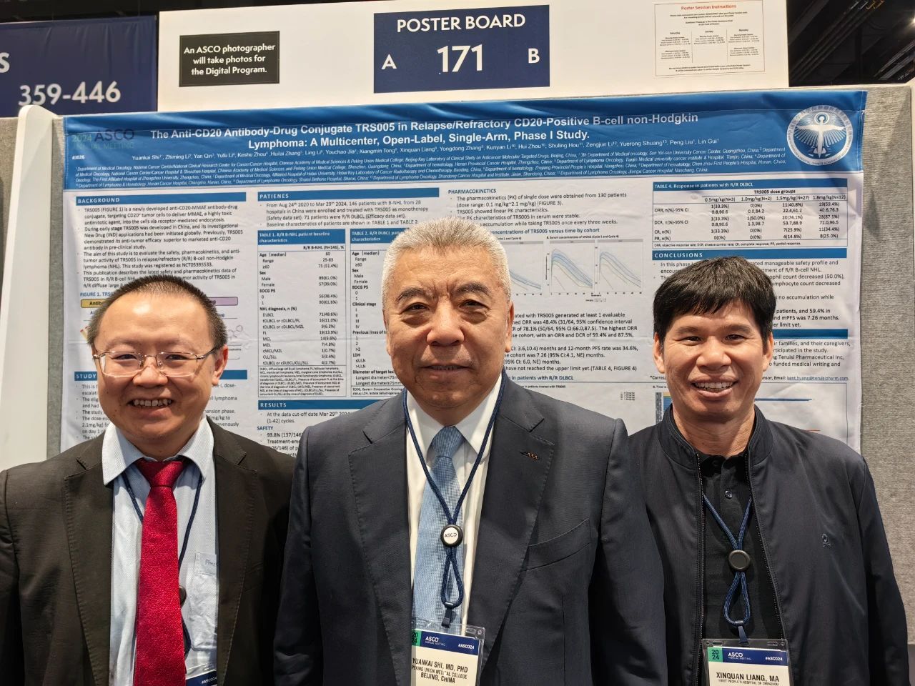 當地時間6月1日,特瑞思與中國醫學科學院腫瘤醫院石遠凱教授(Leading PI)、中山腫瘤防治中心李志銘教授和郴州市第一人民醫院梁欣荃主任攜TRS005針對復發/難治性非霍奇金淋巴瘤受試者的最新研究成果亮相2024 ASCO會議。這是繼2022年ESMO大會之后,TRS005首次在ASCO年會上展示其積極的研究數據。