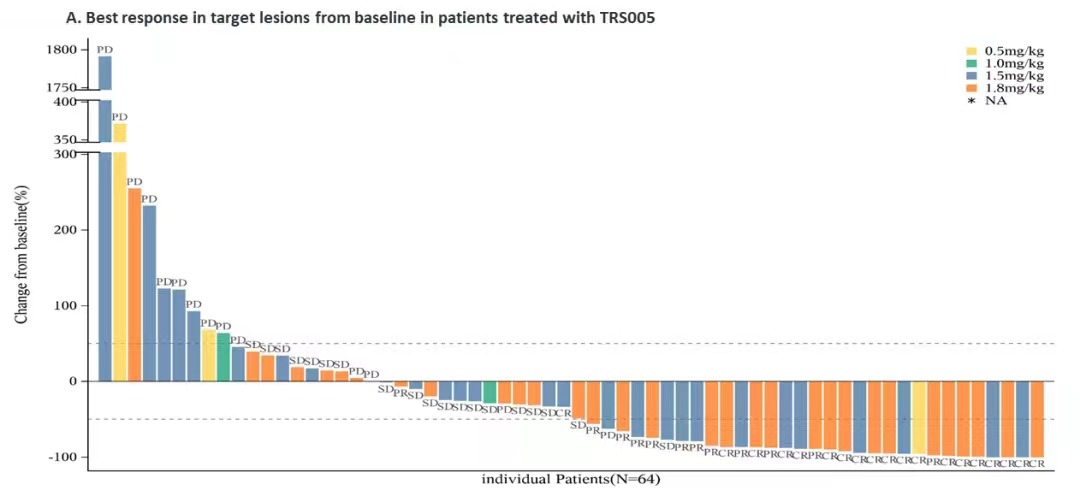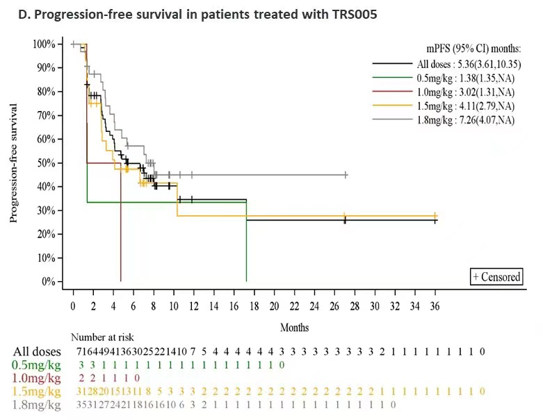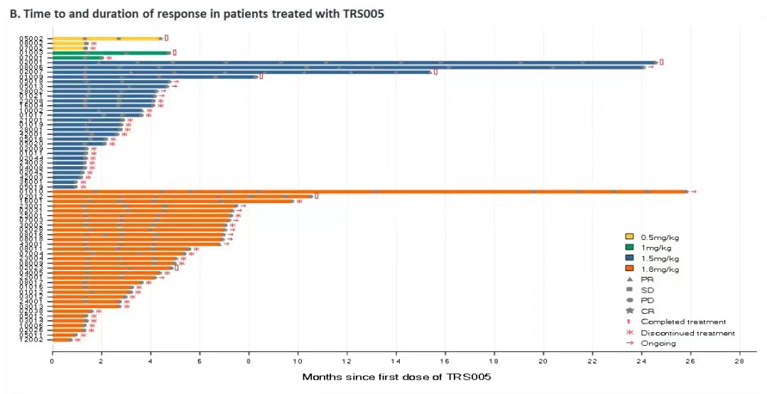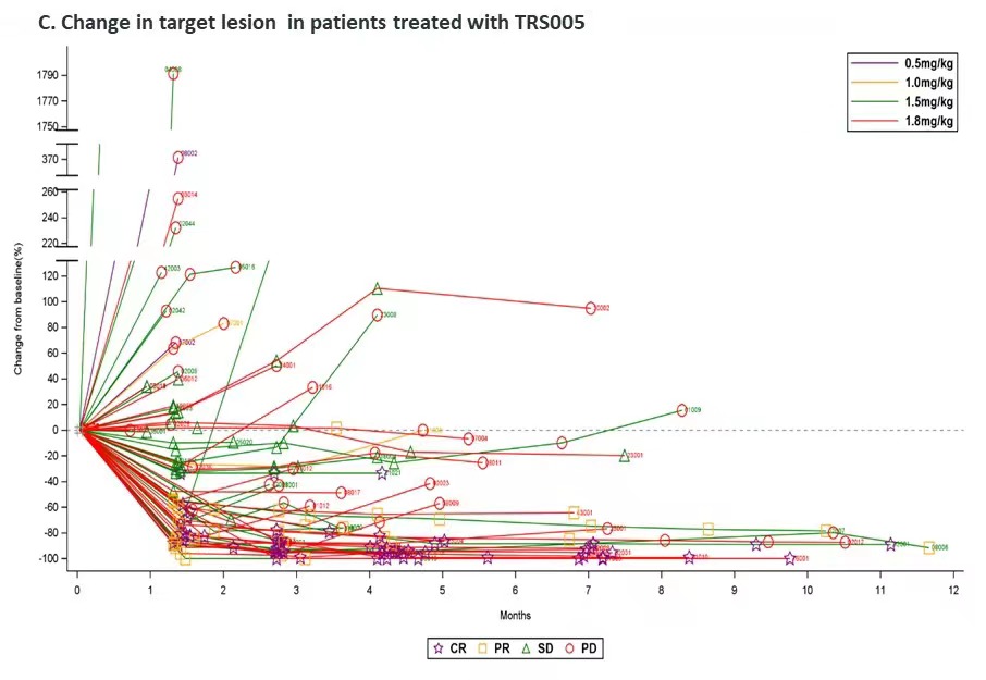 TRS005已積累了約150例患者的臨床試驗數據,現有結果表明,患者生存獲益明顯,安全性可控,耐受性良好。(臨床試驗注冊號:NCT05395533)。